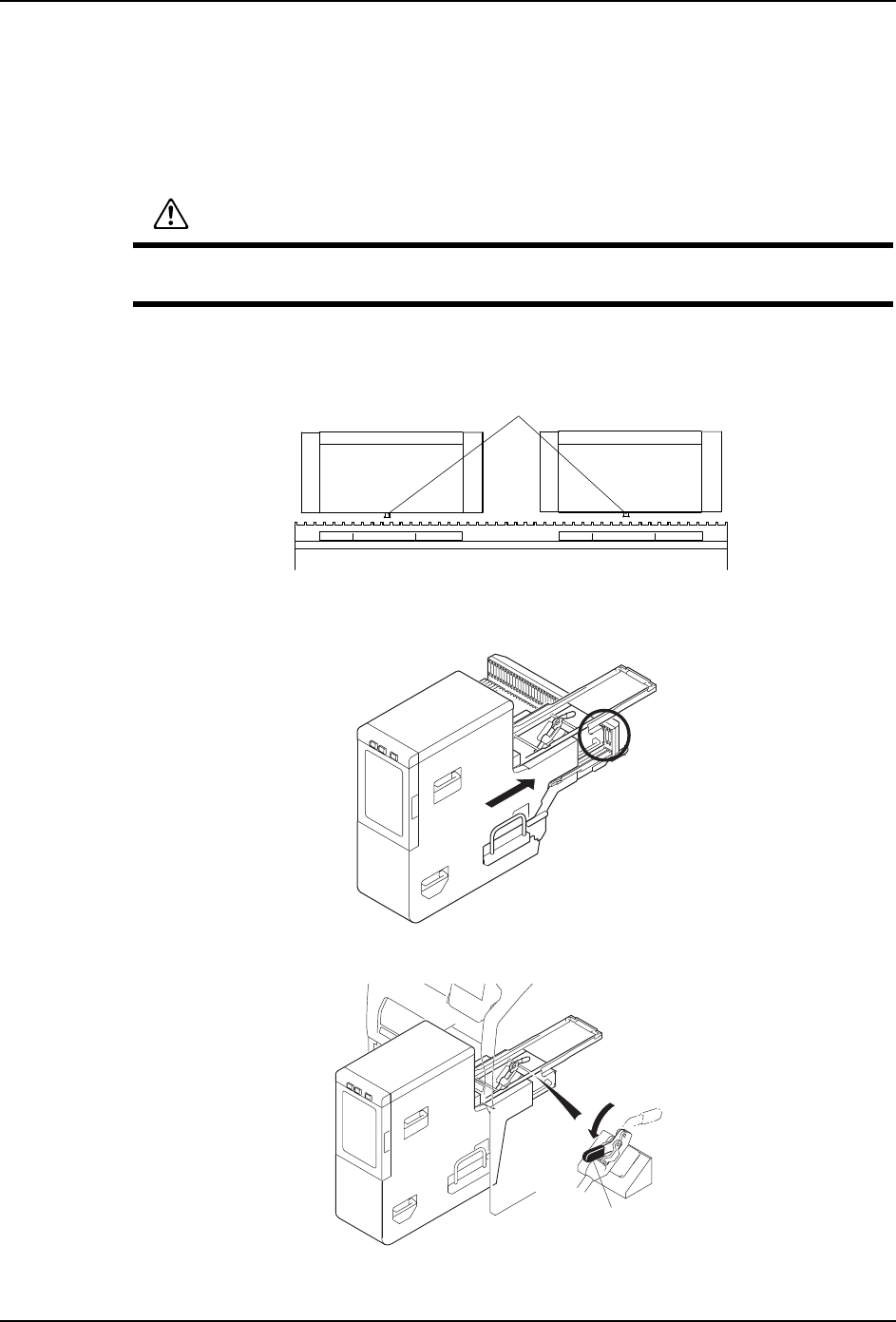 3. 将料站托架下部的料站编号粘纸作为大致目标,把料盘单元 -M 的往复臂的前端部插入到