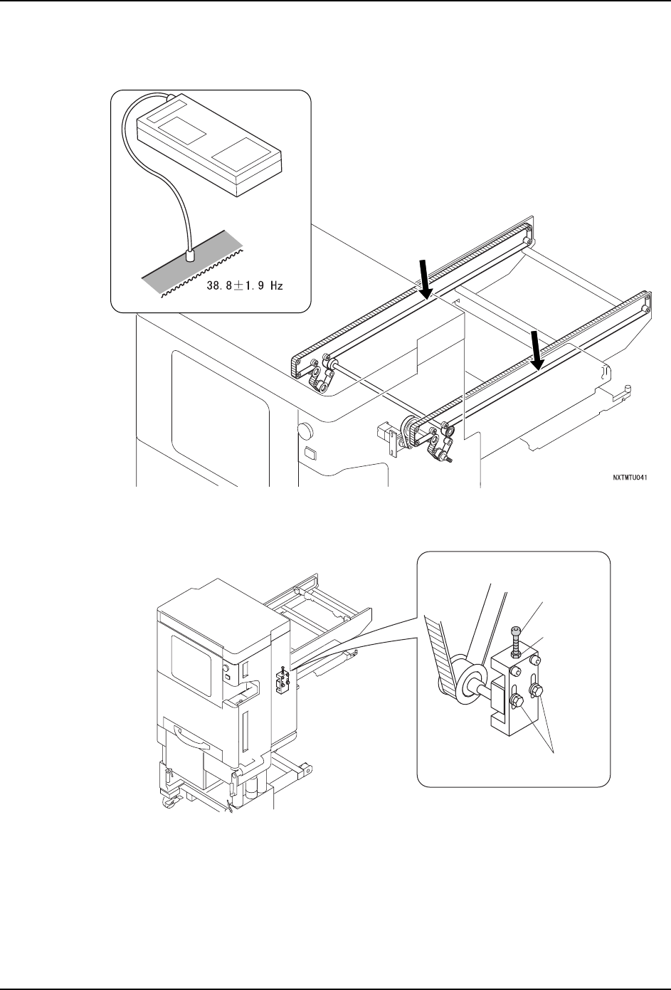1. 请测定皮带的张力。确认在跨距最长的皮带中央的测定值是 38.8 ± 1.9Hz。