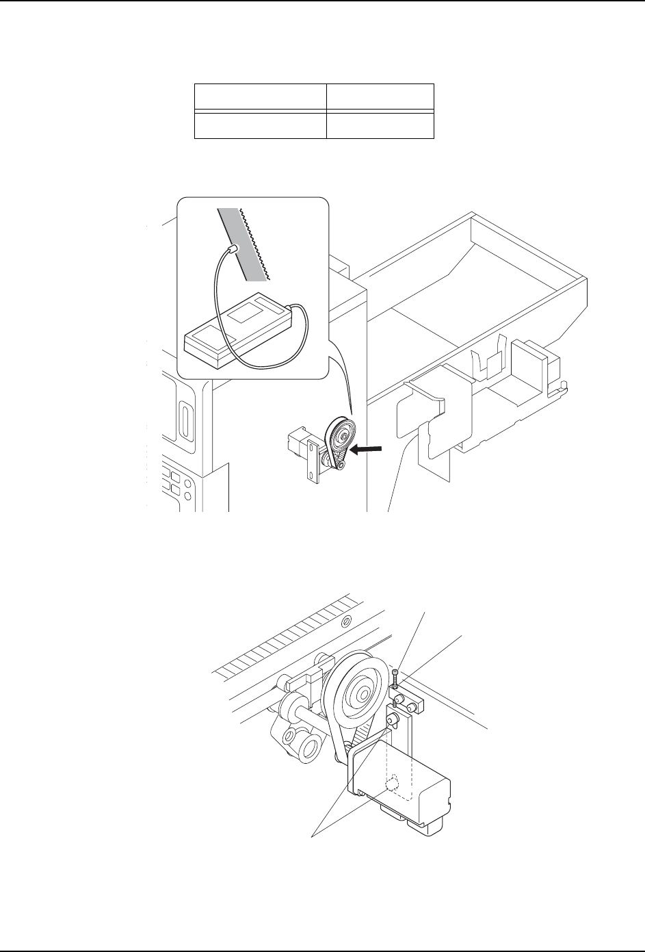 2. 测定值超过上述的范围时请调整皮带张力。请拧松马达的固定螺栓后旋转调整螺栓进行