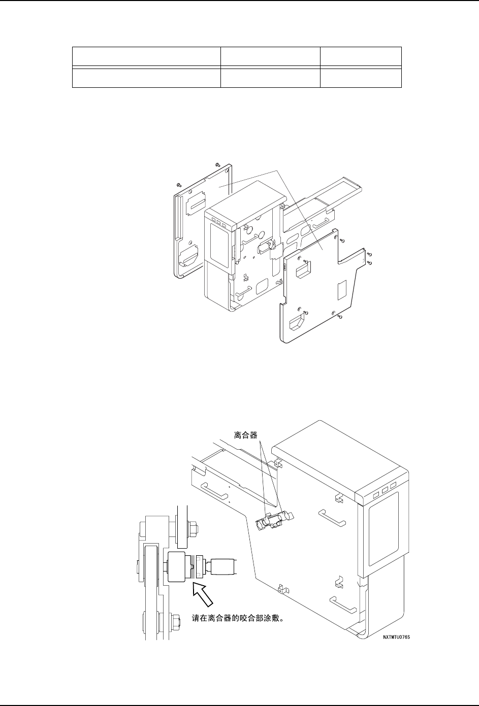 6. 预防保养 QD029-26 256 NXT 机械手册 6.9.20 料盘单元 -M 的 TY 轴离合器的加油 备注 )FUJI 润滑油枪的润滑油一次喷射量是 0.6cc,请作为加油量的大致标准。 1. 将料盘 单元 -M 从模组上拆 下来。( 详细请参考 " 5 .10 料盘单元 -M 的安 装 / 拆 除 ") 2. 拆除料盘单元 -M 的盖罩。 3. 用清洁的布,擦去 TY 轴离合器的污垢。 4. 取 0 …