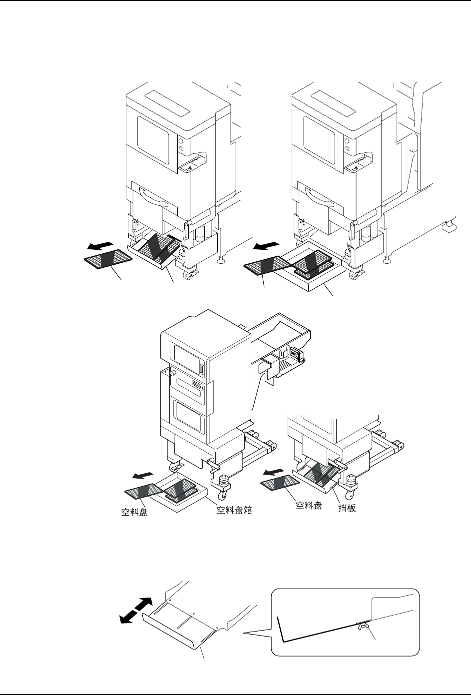 1.有设置空料盘箱和挡板的时候,无论何种情况请都用手回收。即使在自动运转中也可