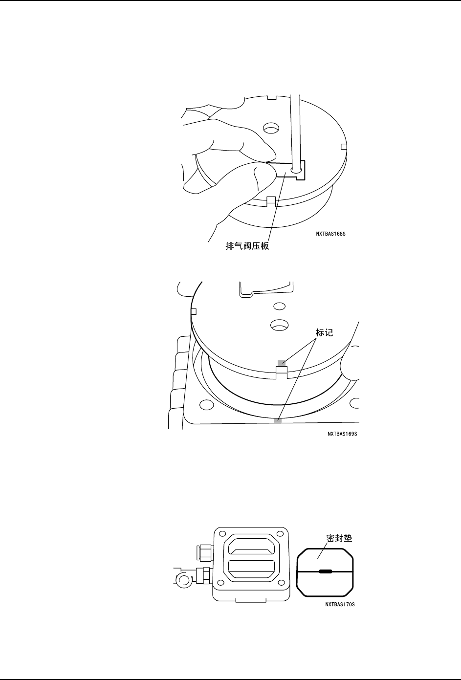 a. 在气缸上放置排气阀。将吸气阀备份以及排气阀压板重叠。