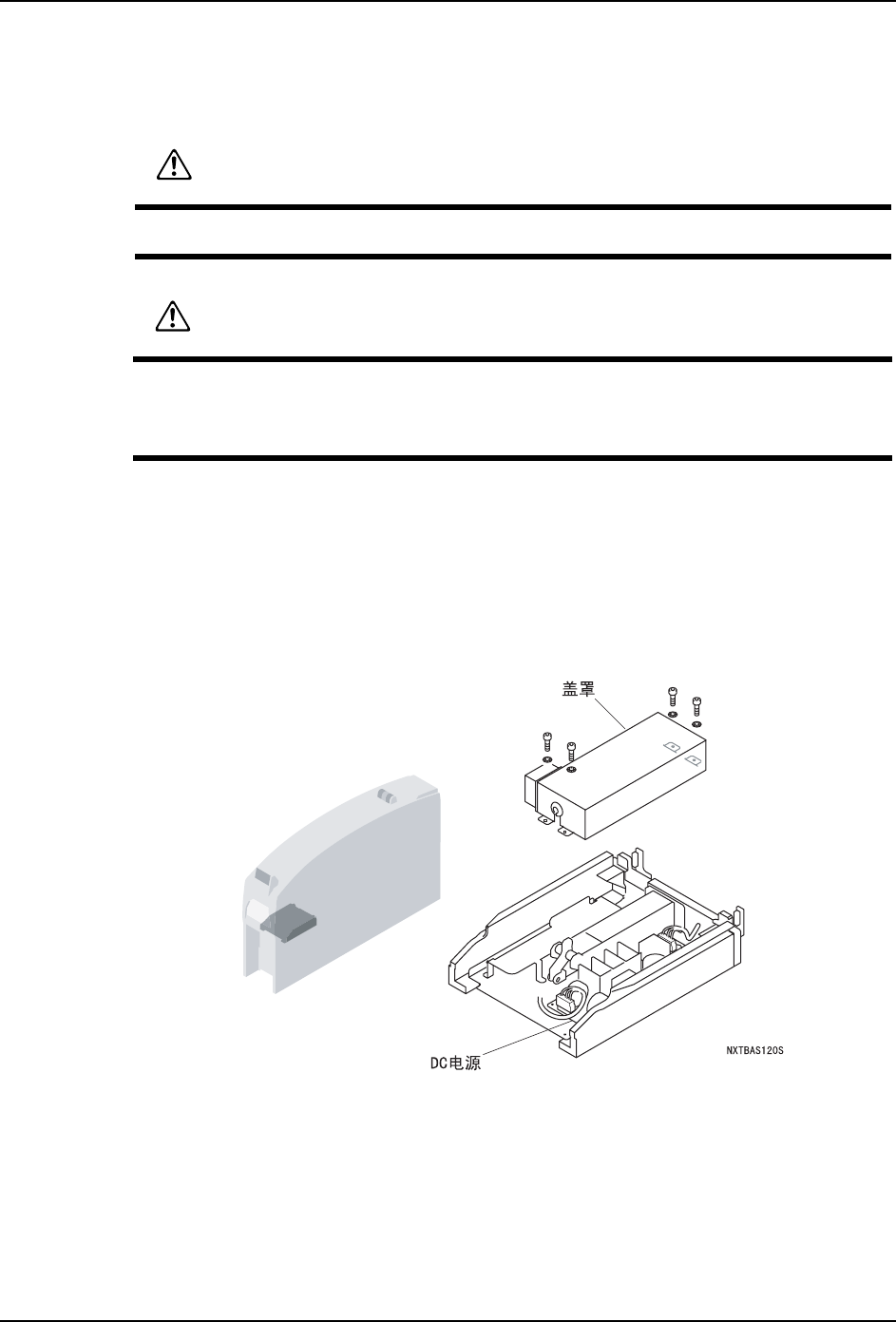 8. 部件的更换 QD029-26 388 NXT 机械手册 3. 取下连接在 DC 电源上的插座。 4. 拆下螺丝 (4 根 ),从托架基座上拆除 DC 电源并更换。