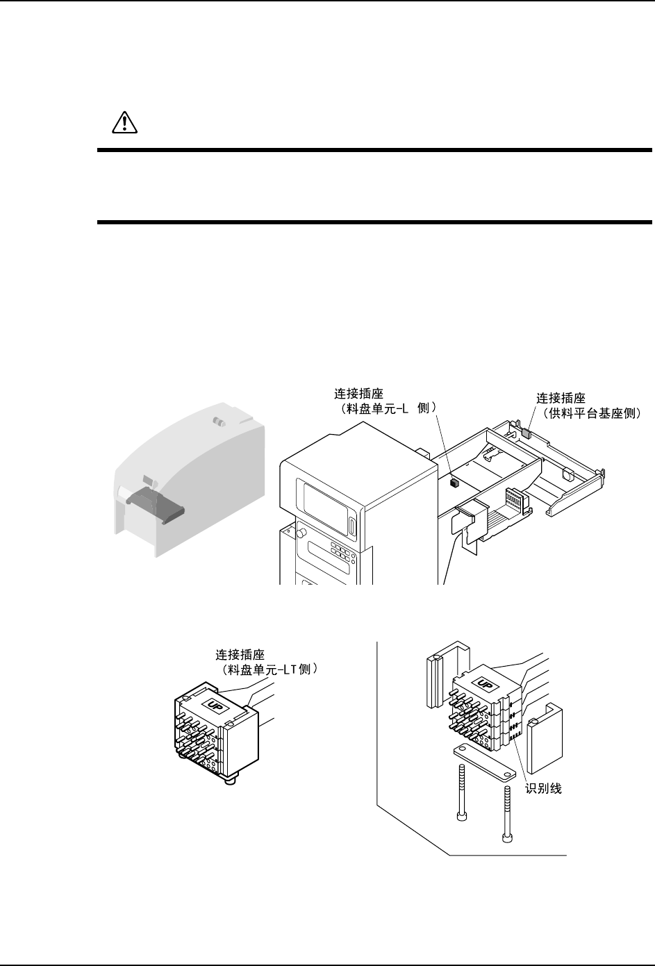 2. 在料盘单元 -LT 和料站托架基座上的图示位置上有用于布线的组合插座。