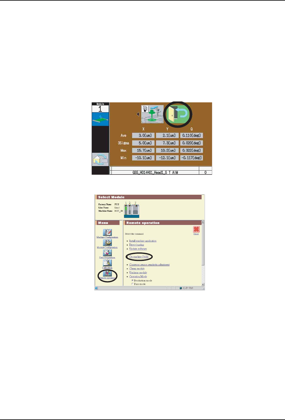 2. 在机器设定画面上,请确认取得 PAM 测定结果的模组。选择「远程操作」-「机上 PAM」。