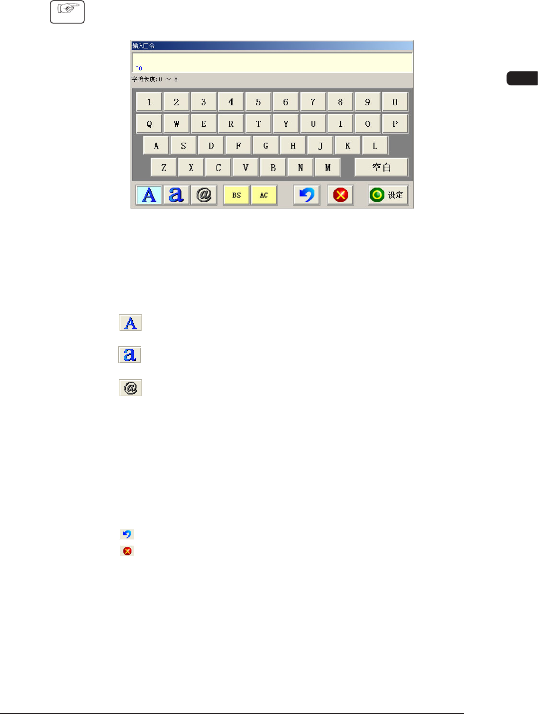 [] 按钮: 输入大写时按该按钮,按钮变为蓝色,键变为大写输入