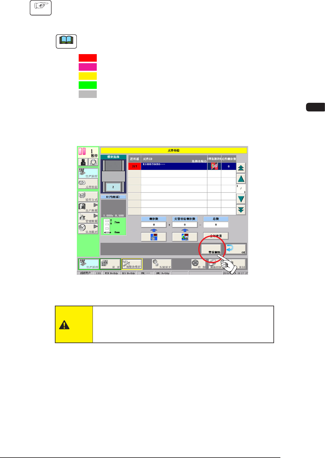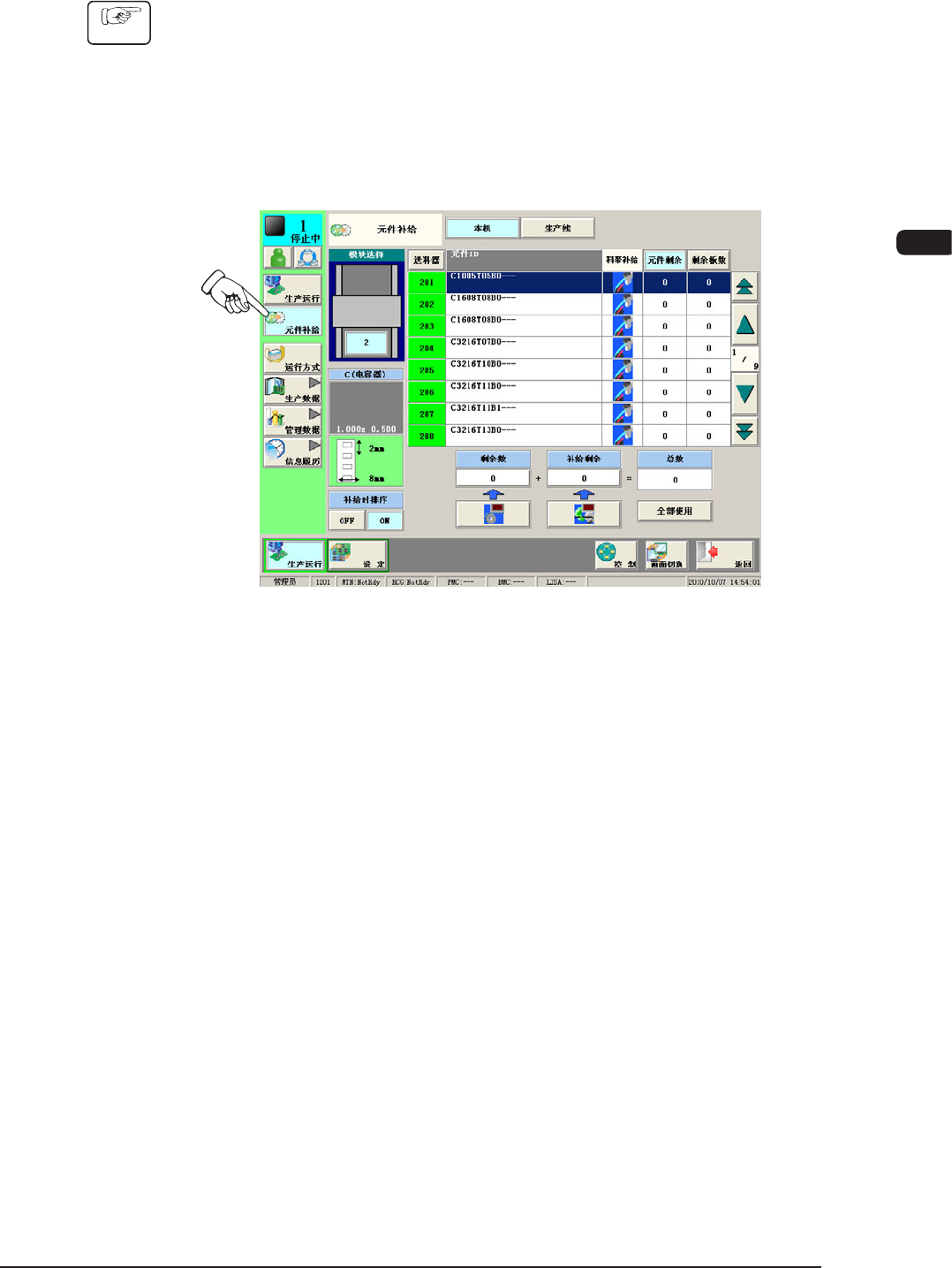 (4) 按生产运行菜单的 [ 元件补给 ] 按钮,切换到