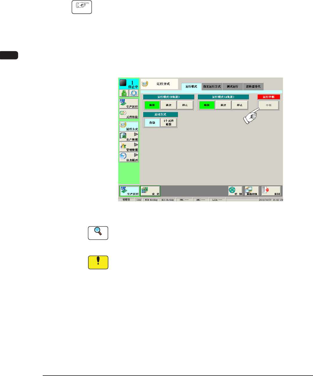 因生产机种或生产线路板不同等原因要中止生产时,请按以下步骤中断生
