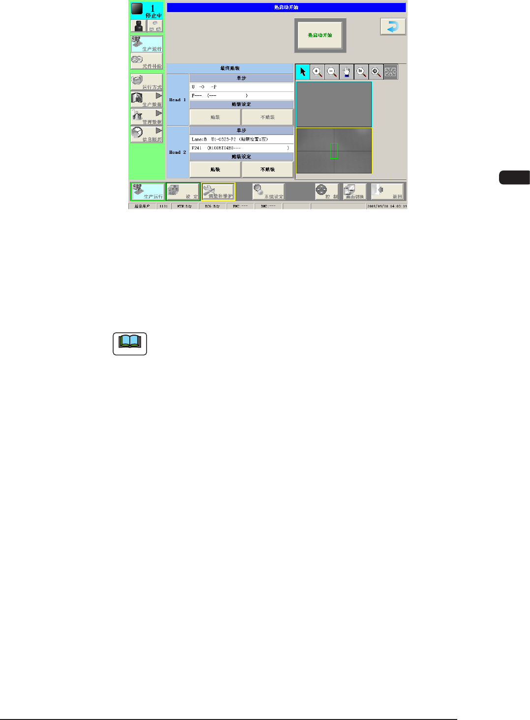 若有未设定贴装设定的安装头时,不能开始热启动。