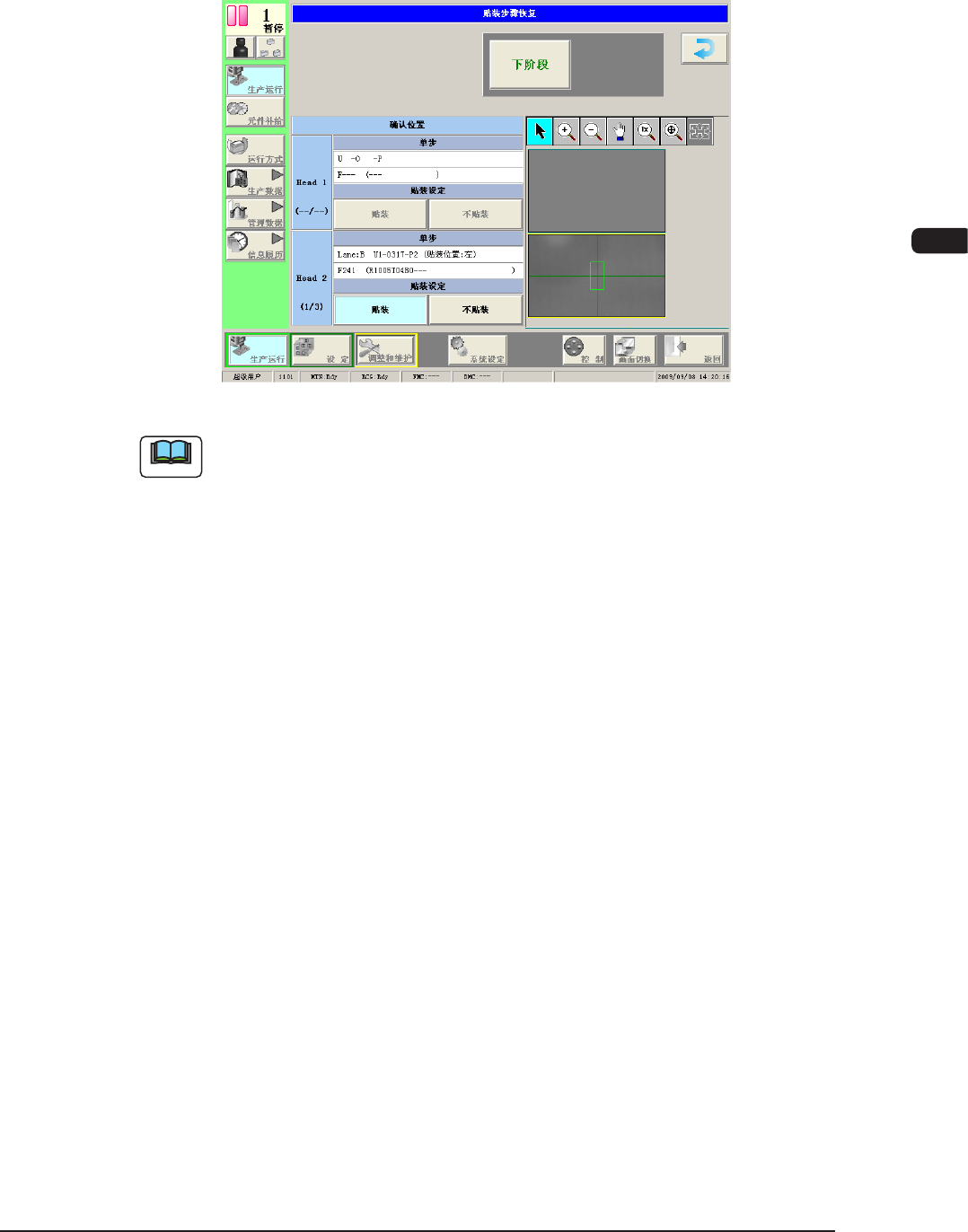 ( 按下 [ 贴装 ] 按钮、[ 不贴装 ] 按钮,[ 下阶段 ] 按钮变为有效。 按下