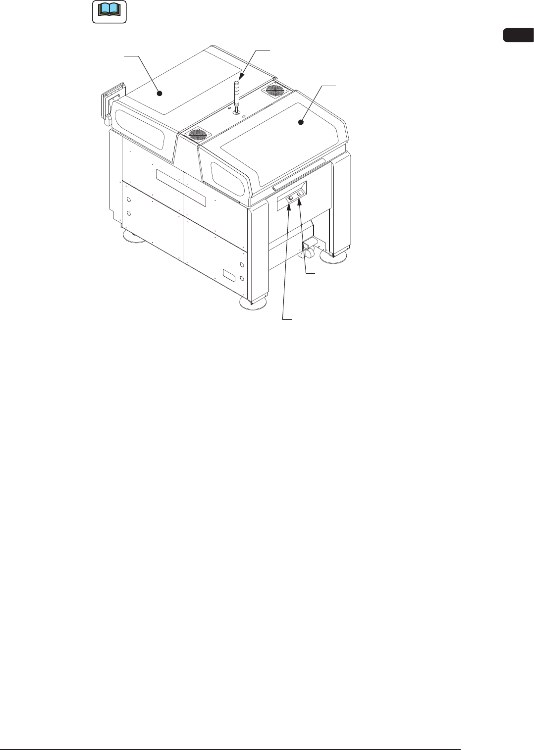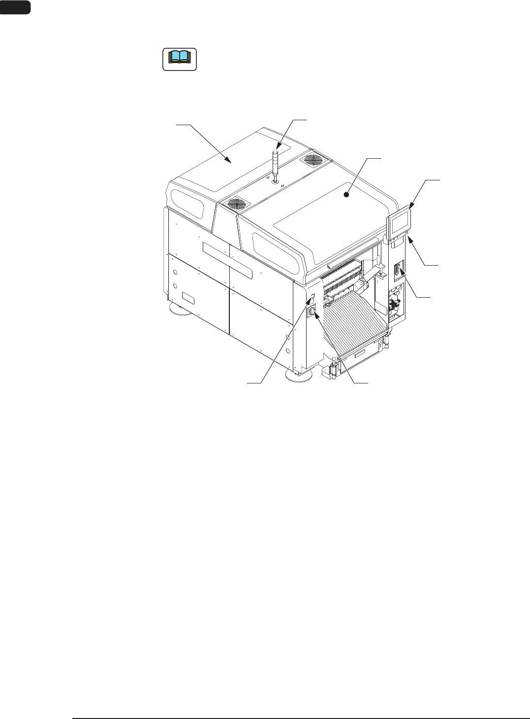 1OM-1604 1-4 第一章2.各部分的名称和功能 2. 各部分的名称和功能 2.1 装置外观 Note ( ) 表示项目。 塔灯 (2.3.2) 操作台 (2.3.3) [ 紧急停止 ] 按钮 (2.2.1) 送料器准备完了开关 ([F2 READY] 按钮 ) (2.2.2) 透明盖 (2.2.4) 机盖锁定开关 ([ 机盖 READY] 按钮 ) (2.2.3) 电闸 (2.3.1) 透明盖 (2.2.4) 装置正面…