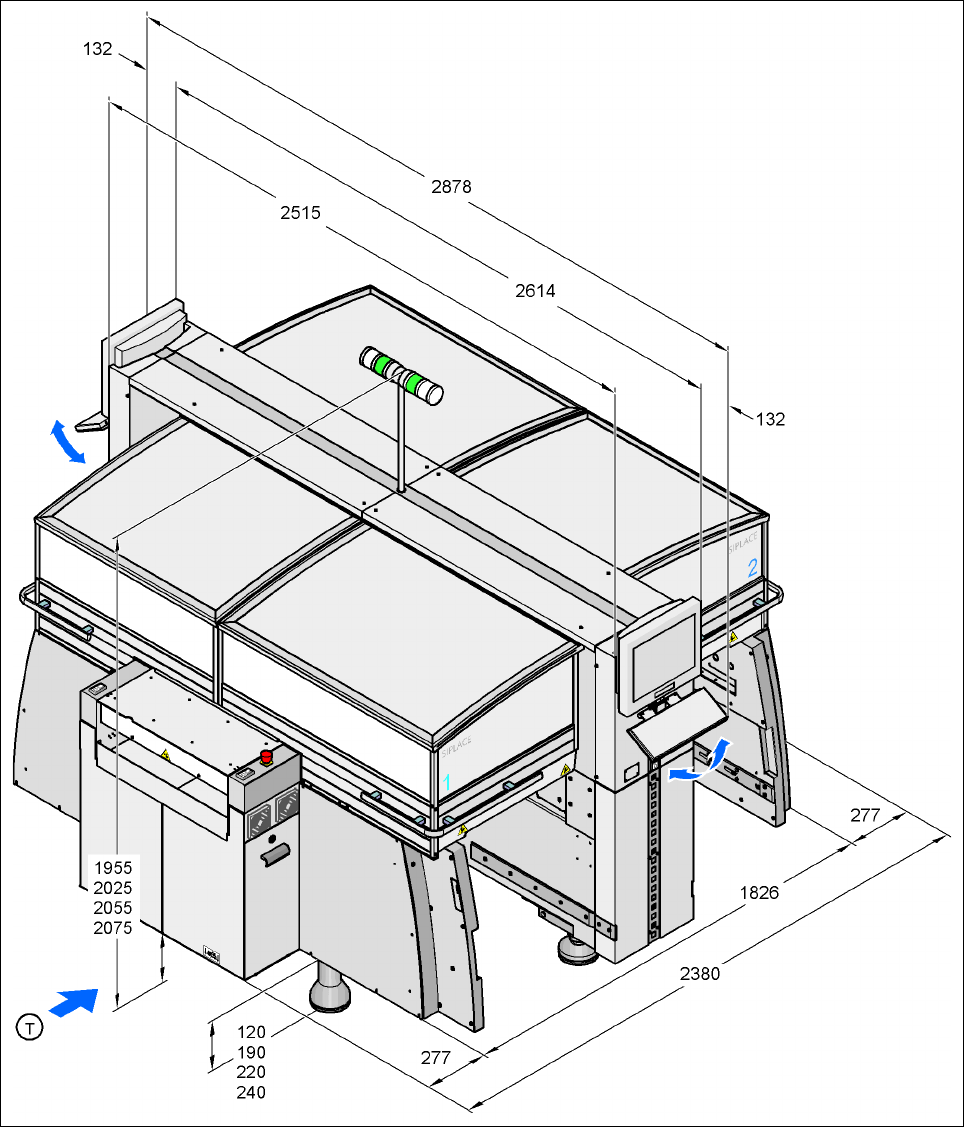 3 Technical data User Manual SIPLACE HF Series 3.8 Dimensions and weight of the placement mach ine Software Version SR. 505.xx 05/2004 US Edition 114 3.8 Dimensions and weight of the placement mac hine 3.8.1 Dimensi ons …