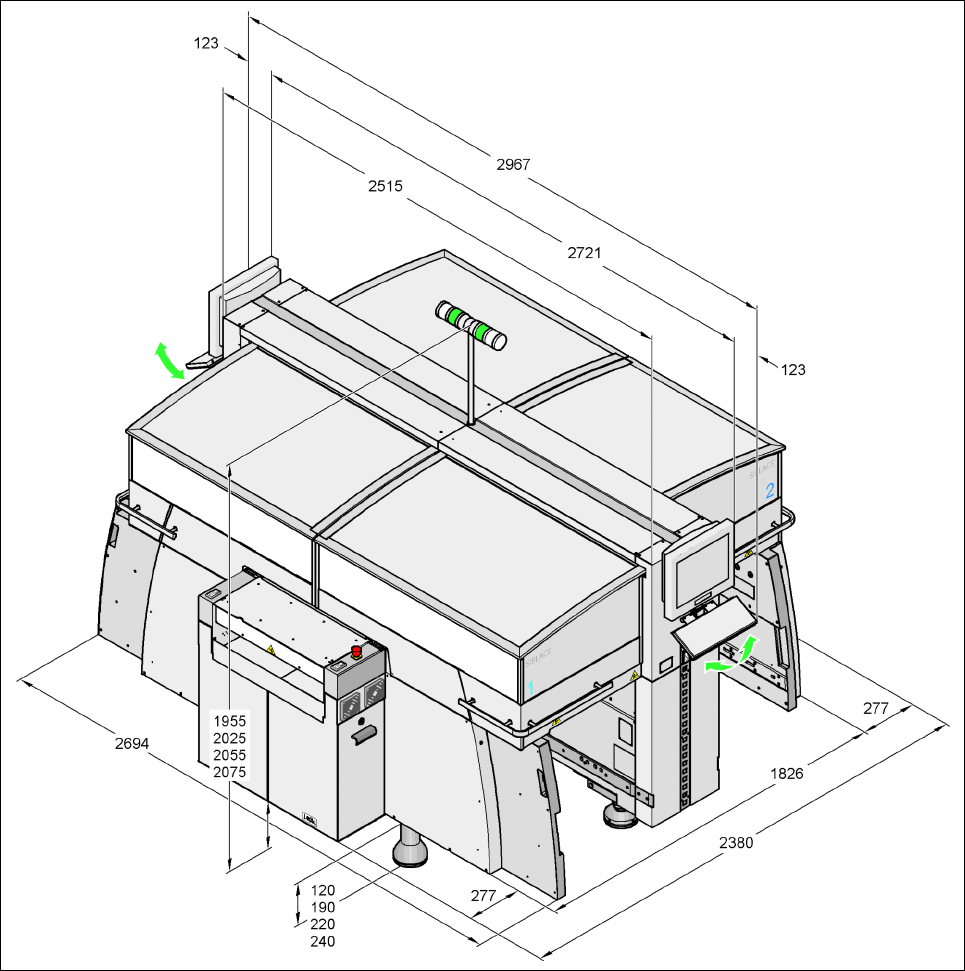 3.8.1 Dimensions of the HF placement machine