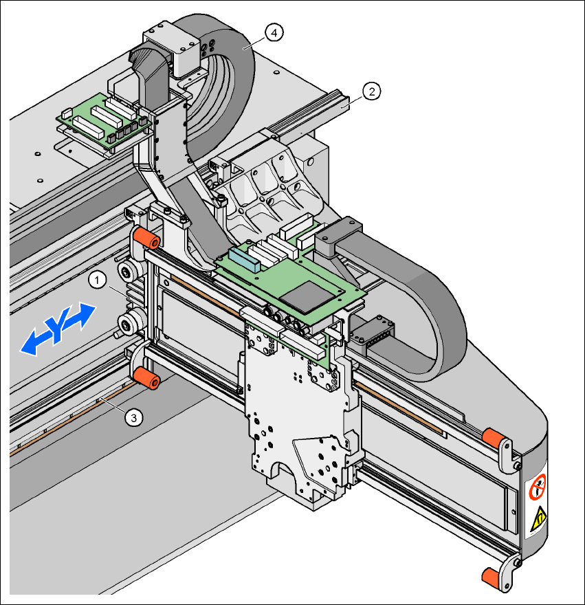 The Y axis is driven by a linear motor. The secondary part of the drive is made up of permanent