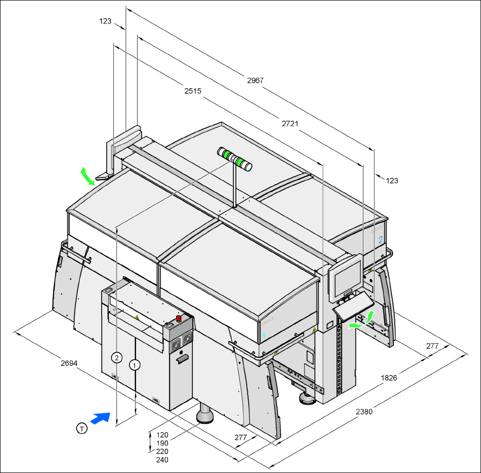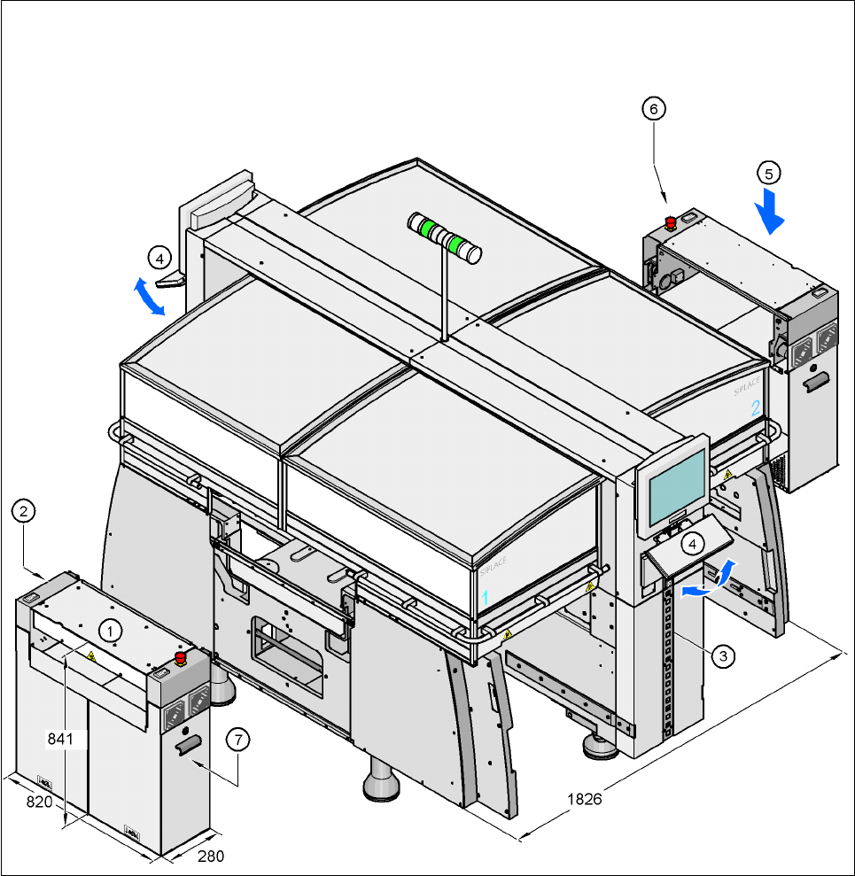 (2) Height of the main fault indicator (max. 2075 mm depending on the PCB transport height)