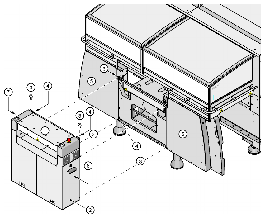 User Manual SIPLAC E HF Series 4 Setting up and commissioning Software Version SR.505.xx 05/2004 US Edition 4. 5 Setting up the placement machine 173 Æ Remov e the cable co vers (item s 3 and 5 in Fig. 4.5 - 6 ) from the…