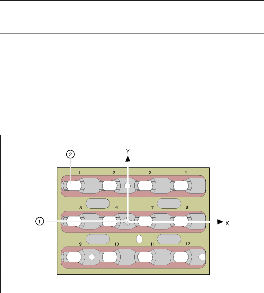 (2) Position of the nozzles in the magazine with respect to the positioning fiducial