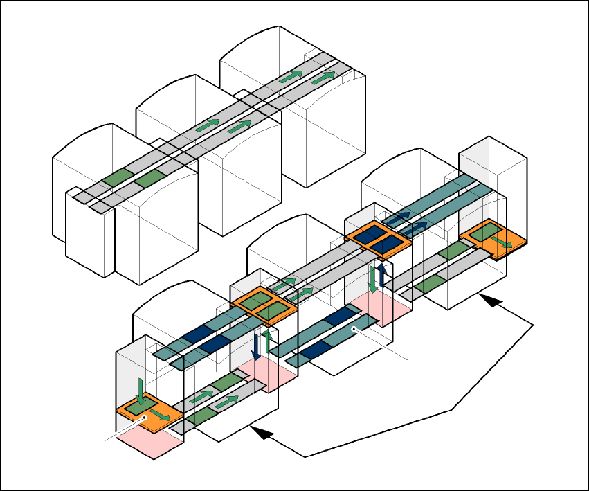 cept was implemented with an underfloor conveyor and horizontal / vertical lift (HV shuttle). The