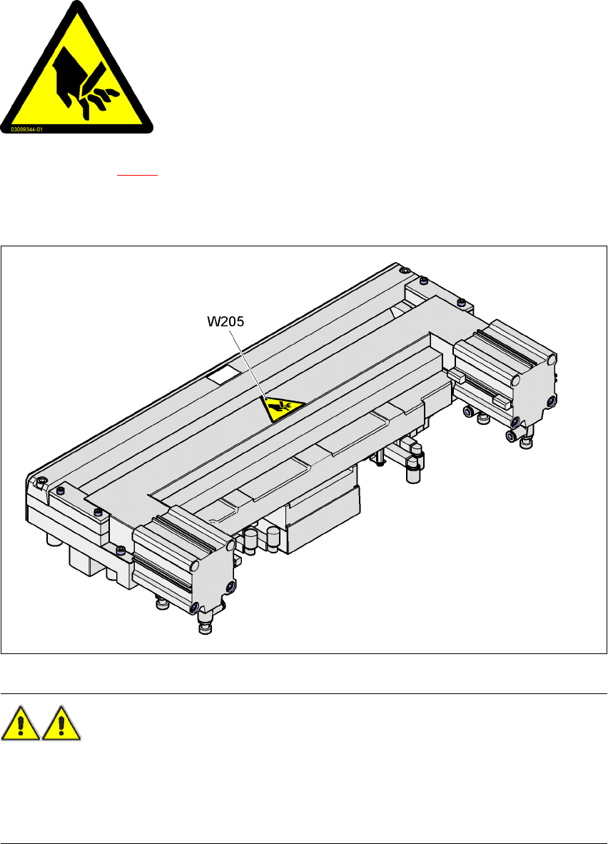 Fig. 2.2 - 4 Warning label W205 on the top of the tape cutter