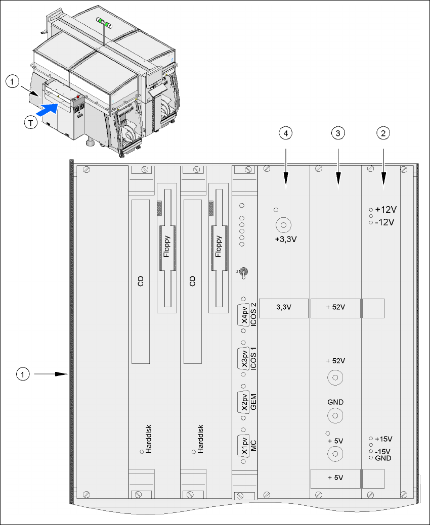 User Manual SIPLAC E HF Series 2 Operational safety Software Vers ion SR.505.xx 05/2004 US Edition 2.9 Energy s tate of the mac hine after switching off at the main power sw itch 75 2 Fig. 2.9 - 3 Position of the compute…