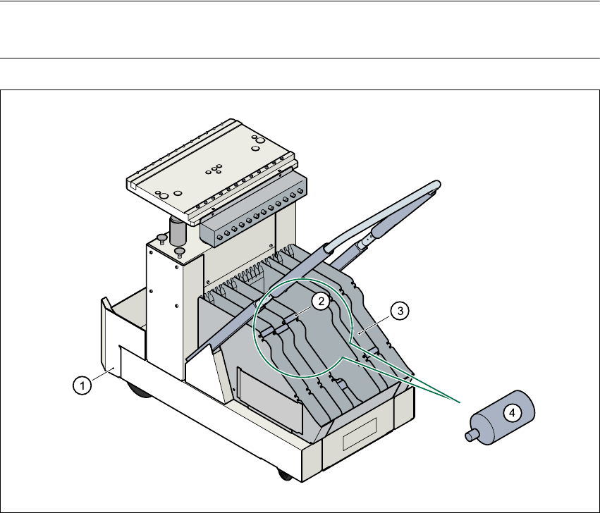 用户手册 SIPLACE HS-60 5 操作员,生产线工程师,维护 工程师 软件版本 SR.503.xx 2003 年 3 月中文版 5.4 进行全面检查 107 5.4.4 插入料车料带容器的分隔板 Æ 按图 5. 4 - 2 所示, 插入分隔板。 记住, 料带容器的最小分区数为 2x 分区。 这将有助于避免贴片 错误。 Æ 检查分隔板是否啮合在两个导轨的同一位置上。否则, 分隔板会偏移或弯曲。 5 图 5.4 - 2 插入料车料带…