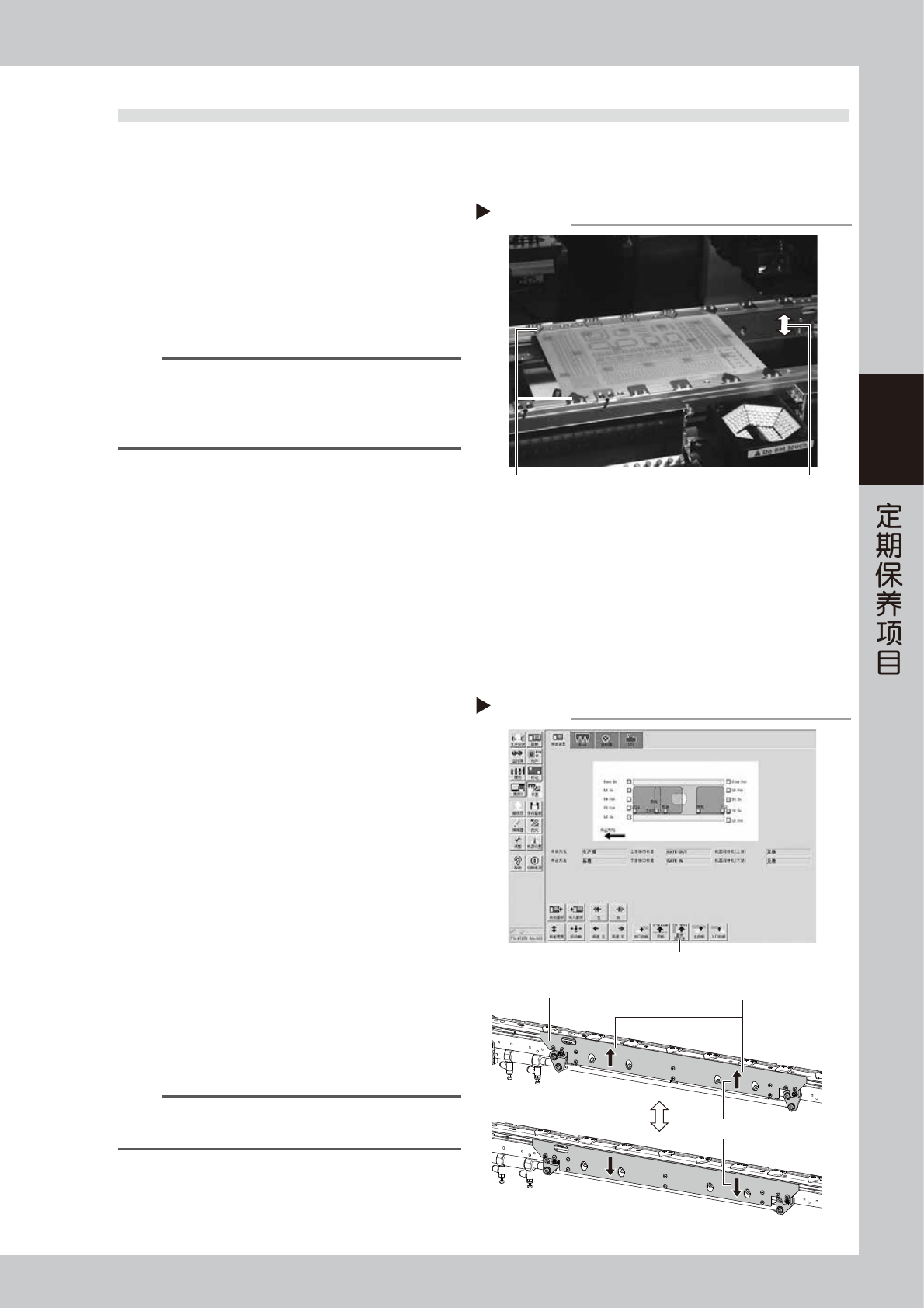3-9 3 1.4 检查基板固定夹的状态与动作 1.4.1 基板夹固状态的检查 除了切换生产品种时需检查基板的夹固状态之外,即使没有切换生产品种也需要 1 周检查 1 次基板的夹固状态。 1. 夹固之后,基板无松动。 2. 夹固之后,基板压板与基板之间无间隙。 3. 夹固之后,传送轨面与基板面之间无高低之差。 4. 基板固定夹夹固、松开的动作顺畅。 55306-L6-00 n 要点 上述 1 〜 3 的检查结果为不良时,请确认基…