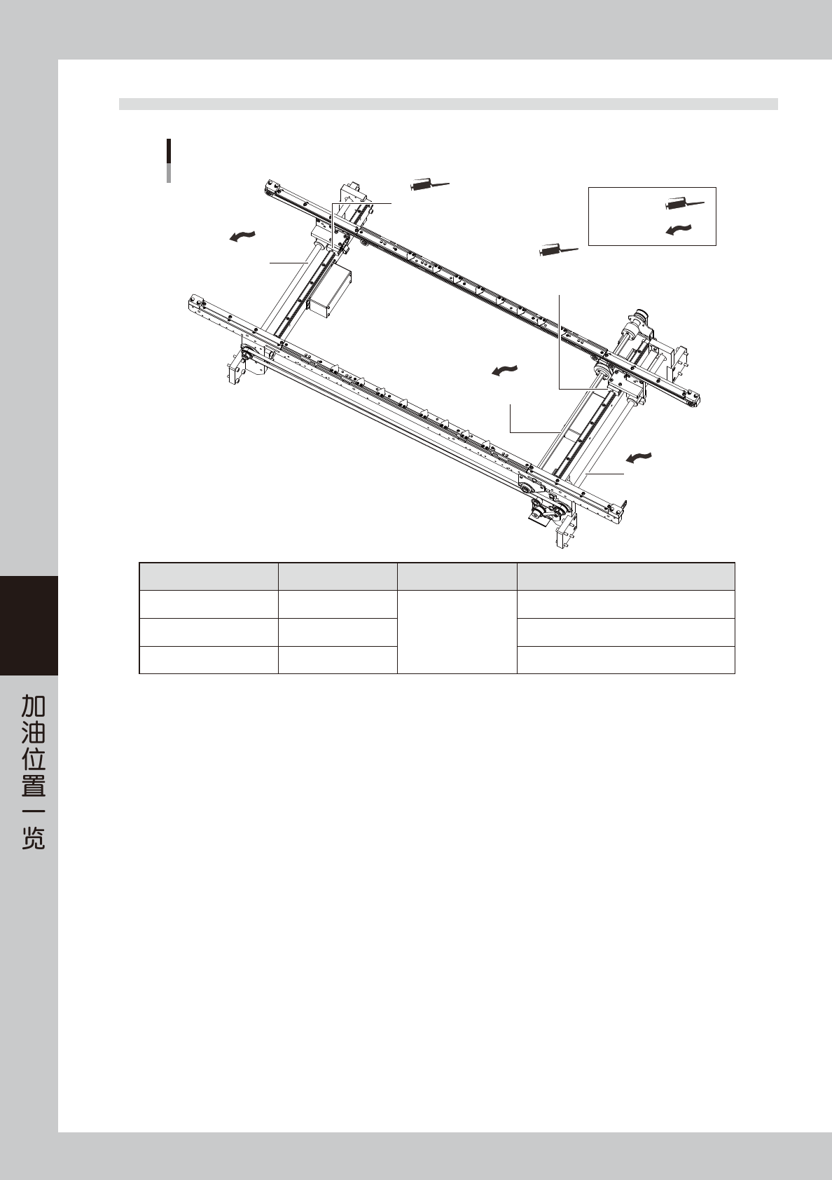 下面,介绍各部位的加油位置与加油频率以及加油方法。