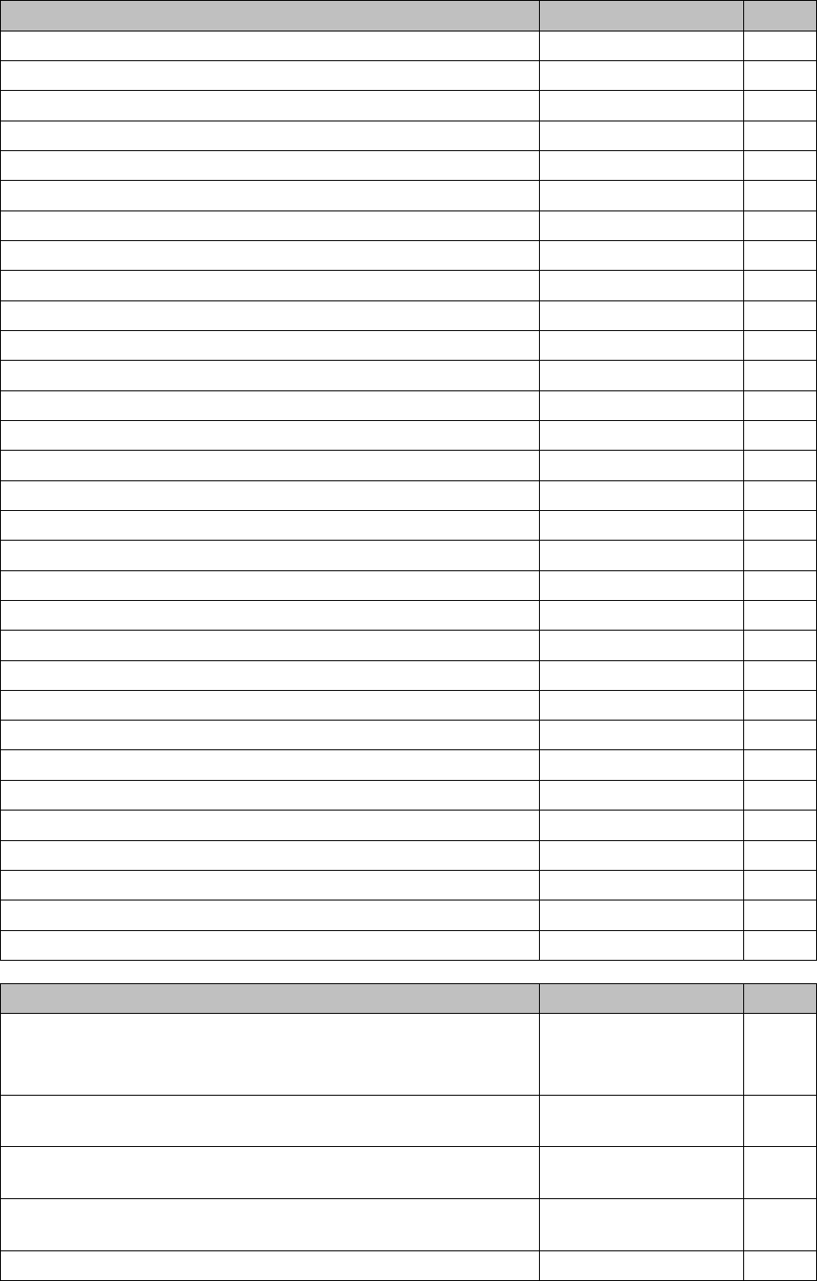 The following lists contain all necessary consumable materials, wear and spare parts plus tools for per-