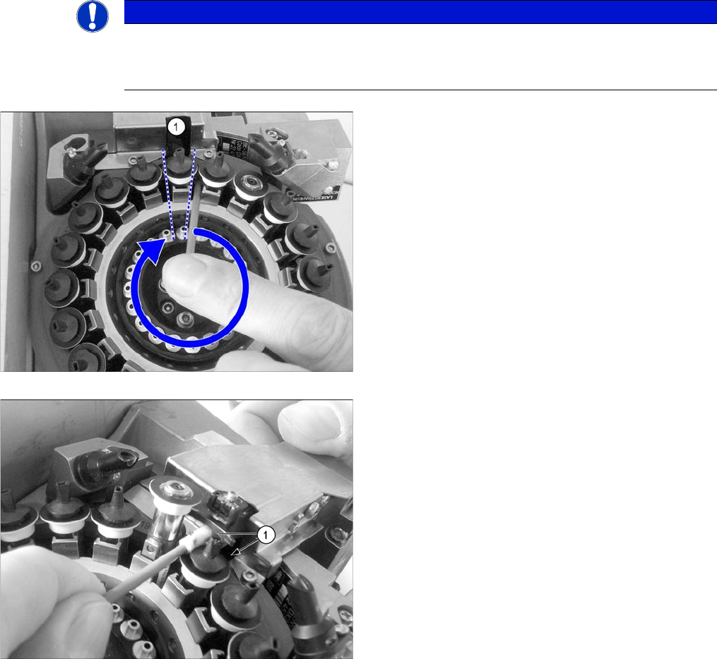 ► Push a cleaning stick past the Z axis (1), through two