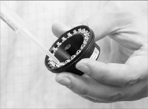 To do this, fill the orange combitip with distilled water