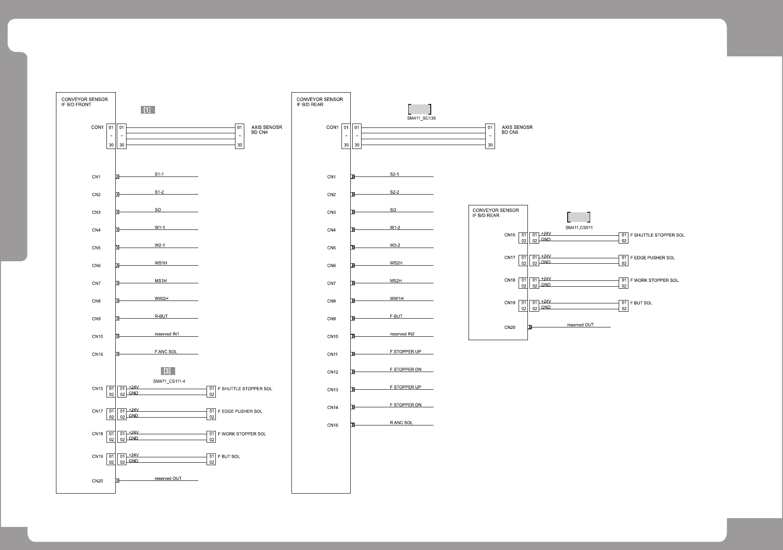 Page +$1:+$ 139 SM471 PLUS Conveyor Board Interface (5/5) NO. P A RT NO. P ART NAME Q'TY Old No. Supply Supp ly L T Reference 1 AM03 -005438B CABLE ASSY -F_AREA_S ENSOR_J5R 1 SM471_CV1 15 2 AM03-020680A CABLE ASSY -…