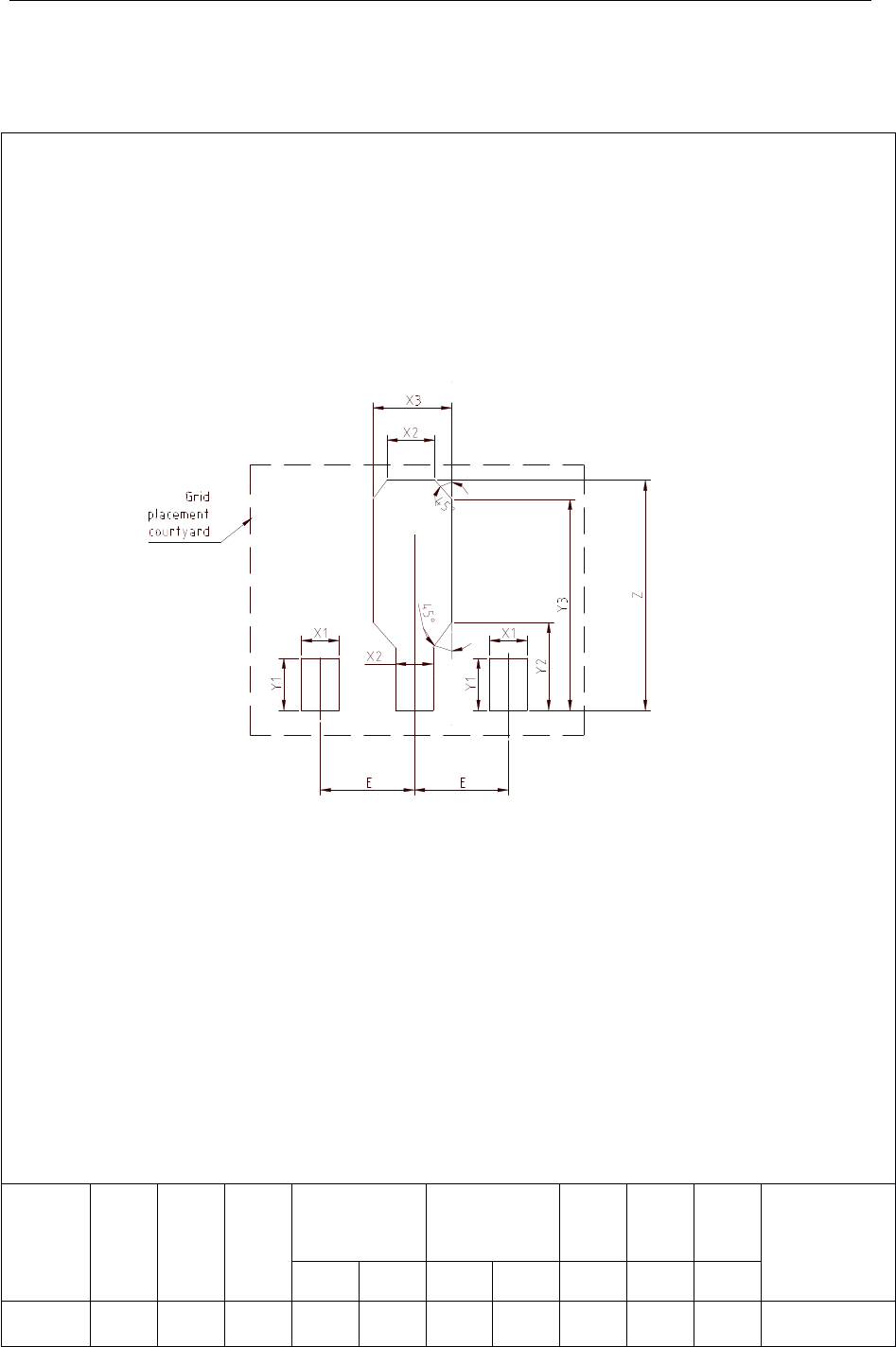 Q/Z X - 2000 23 6.1.8.2 SOT 89 的焊盘尺寸 SOT 89 的焊盘尺寸应符合图 22 的规定。见图 22: 图 22 SOT 89 焊盘尺寸 封装名称 Z (mm) Y1 (mm) X1 (mm) X2 (mm) X3 (mm) Y2 (mm) Y3 (mm) E (mm) 区域网格 (网格单元 号码) Min max min max ref Ref basic SOT 89 5.40 1.40 0.80 0…