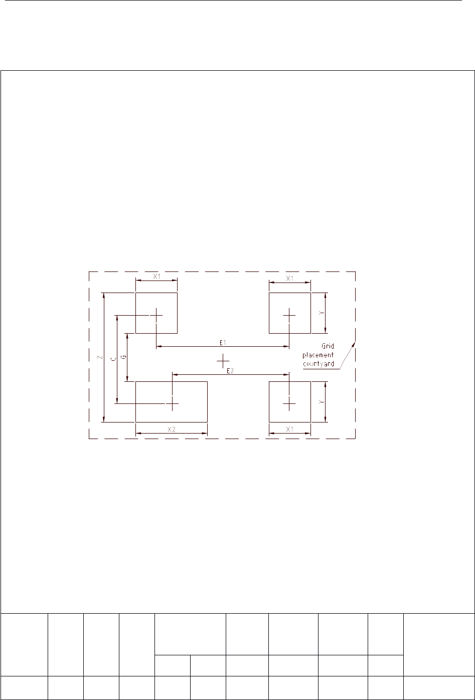 Q/Z X - 2000 27 6.1.10.2 SOT 143 的焊盘尺寸 SOT 143 的焊盘尺寸应符合图 26 的规定。见图 26: 图 26 SOT 143 焊盘尺寸 封装名称 Z (mm) G (mm) X1 (mm) X2 (mm) C (mm) E1 (mm) E2 (mm) Y (mm) 区域网格 (网格单元 号码) Min max ref basic Basic ref SOT 143 3.60 0.80 1.00 …