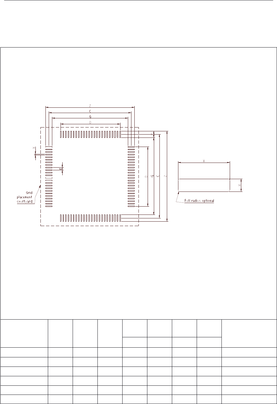 Q/Z X - 2000 56 6.4.1.1 PQFP 的焊盘尺寸 PQFP 的焊盘尺寸应 符合图 53 的规定。见图 53: 图 53 PQFP 的焊盘尺寸 封装名称 (总引脚数) Z (mm) G (mm) X (mm) Y (mm) C (mm) D (mm) E (mm) 区域网格 (网格单元号 码) ref ref ref ref PQFP84 21.00 17.00 0.35 2 .00 18.80 12.70 0.635…