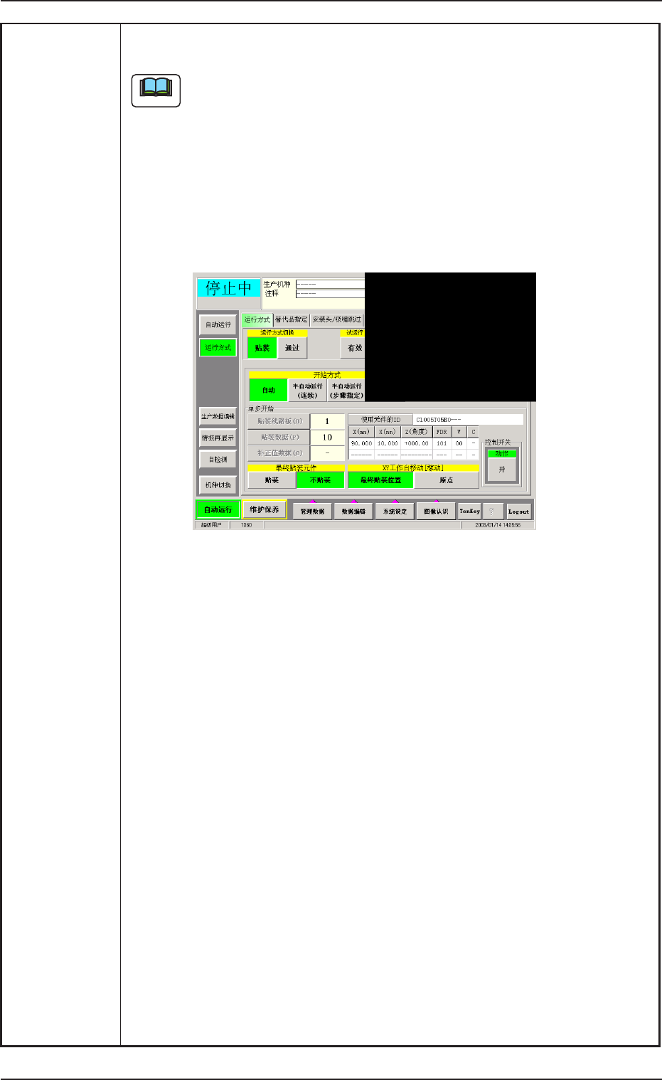 “ 运行方式 ” 子菜单界面的 “ 单步开始 ” 栏内显示最后贴装步骤。