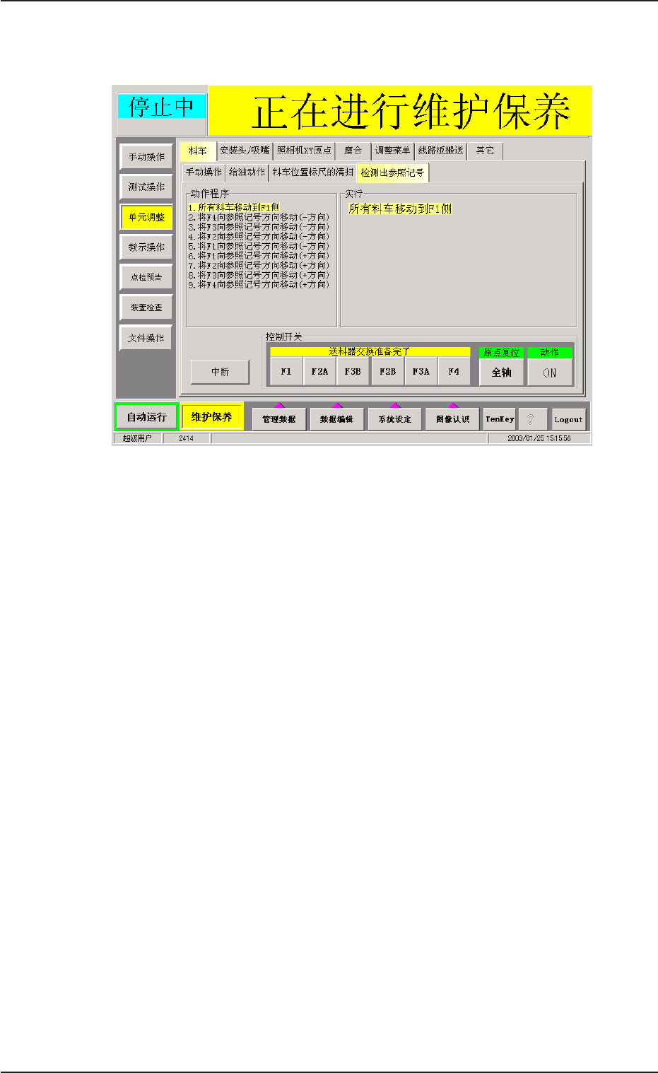 钮,料车 3 、4 向 F1 原点方向移动,显示如下界面。