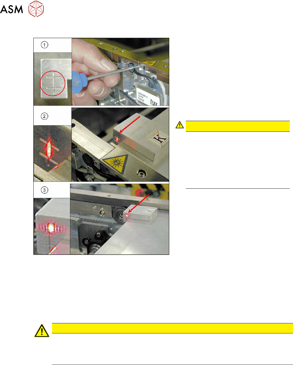 ► Stellen Sie ggf. mit Hilfe der oberen beiden Schrauben den Laserstrahl auf den Laser-