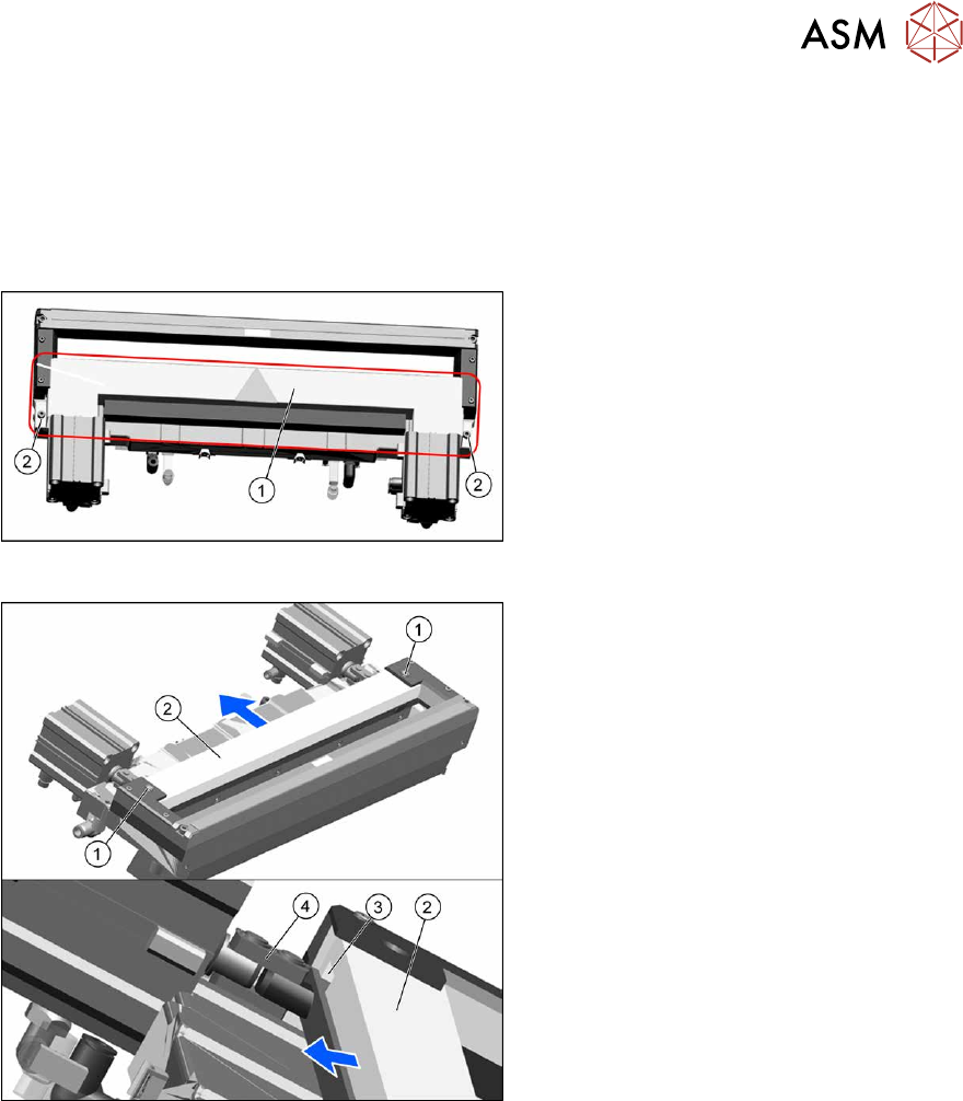 9 Bauelemente-Zuführung 9.1 Schneidgerät 314 Serviceanleitung SIPLACE X-Serie S (ab Hxxxx) 01/2021 9.1.11 Abstreifer tauschen Teile Abb.417: Abstreifer 03000491‑xx Abstreifer (Schneidgerät HF) Hilfsmittel und Werkzeug 0…