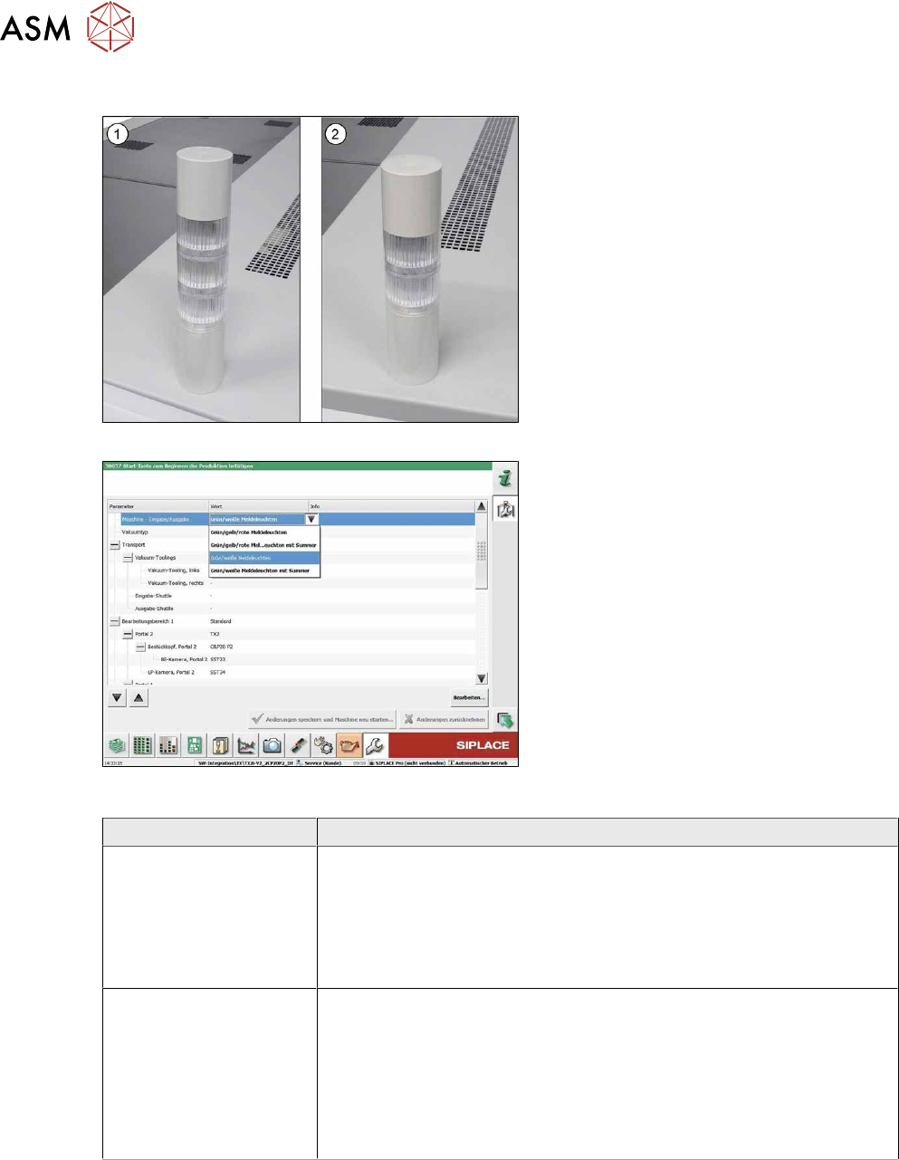4 Elektrik und Steuerung 4.5 Meldeleuchte 76 Serviceanleitung SIPLACE X-Serie S (ab Hxxxx) 01/2021 Zwei-/Dreifarbige Meldeleuchte Abb.82: Drei-/Zweifarbige Meldeleuchte Abb.83: Drei-/Zweifarbige Meldeleuchte einstellen…
