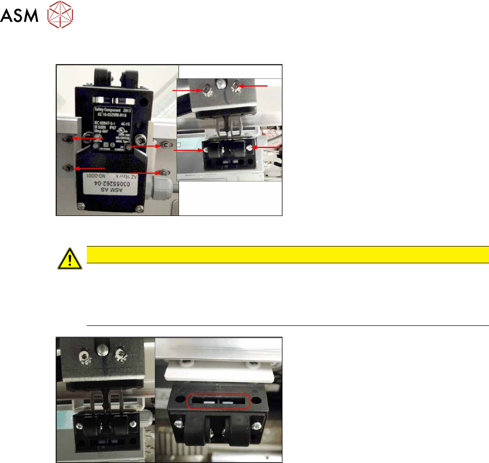 2 Grundmaschine 2.4 Einstellung der Hauben 28 Serviceanleitung SIPLACE X-Serie S (ab Hxxxx) 01/2021 2.4.2 Einstellung des Haubenschalters Abb.13: Haubenschalter (am Beispiel SIPLACE SX2) Haubenschalter [03055262-xx] ► L…