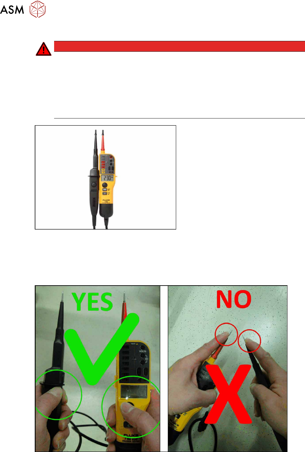 Abb.48: Korrektes und falsches Handling des Spannungsprüfers