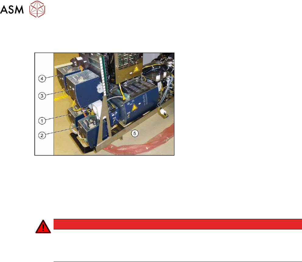 3 Stromversorgung 3.4 Stromversorgungs- und Trafomodul 60 Serviceanleitung SIPLACE X-Serie S (ab Hxxxx) 01/2021 3.4.6 AC/DC-Konverter tauschen Teile, Hilfsmittel und Werkzeug Abb.62: Übersicht AC/DC-Konverter 1. PS1: AC…