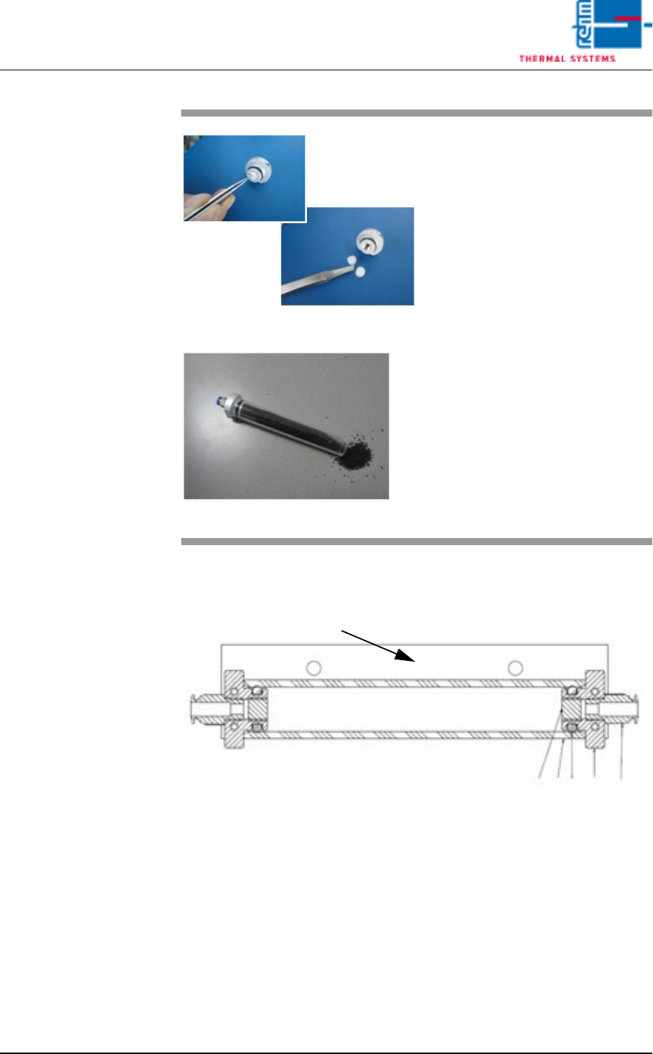 Page 56 Vision XP+ V AC 2 Maintenance 2.14 Residual Oxygen Meter Operating Instructions V ersion 1.5 Detail drawing of the activated car bon filter on the adapte r plate. 1. Cover activated carbon filte r 2. Tube activat…