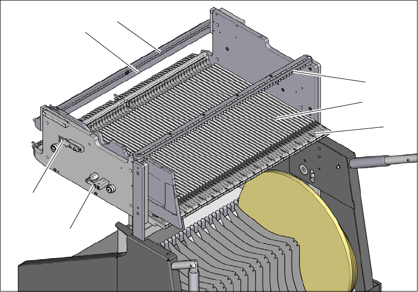 sepal i indgreb på fødemodulets låserulle. Centreringsstiften "bag" på oversiden af fødemodulet