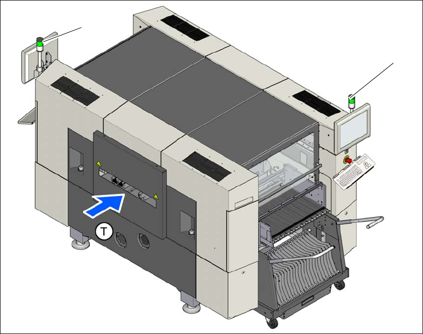 5 Opgaver på maskinen Betjeni ngsvejled ning SIPLACE SX1/SX2 5.7 Indikatorlamper med horn Fra softwareversion SR.710.0 Udgave 12/2016 DK 230 5.7 Indikatorlamper med horn 5.7.1 Oversigt Indikatorlamperne signaler er autom…