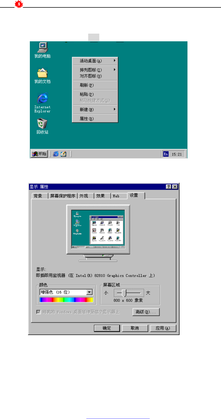 2) 在“屏幕区域”下拖动鼠标,选 800×600 象点;