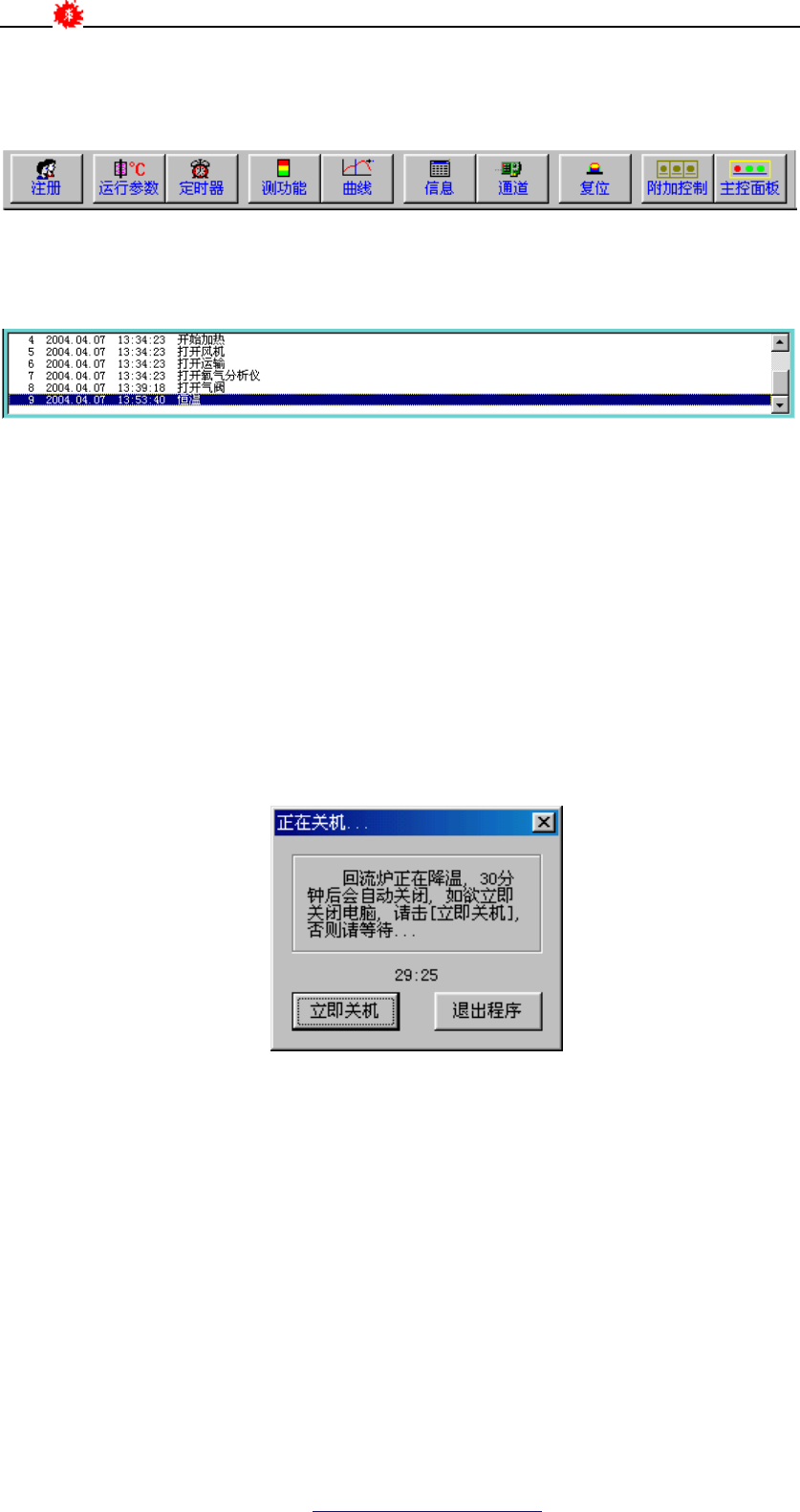 S U N EA ST N T S e r i e s V 2 H o t A i r R e f l o w O p e r a ti o n M a nu a l 21 S UN E A S T TE C HNO L OGY D E V EL O P M E N T Co . , LTD l 工具 栏 如图 5 -5 所 示 , 工 具 栏 包 含 主 要 的 控 制 命 令 。 图 5 -5 l 操作 记 录 窗口 图 5 -6 …