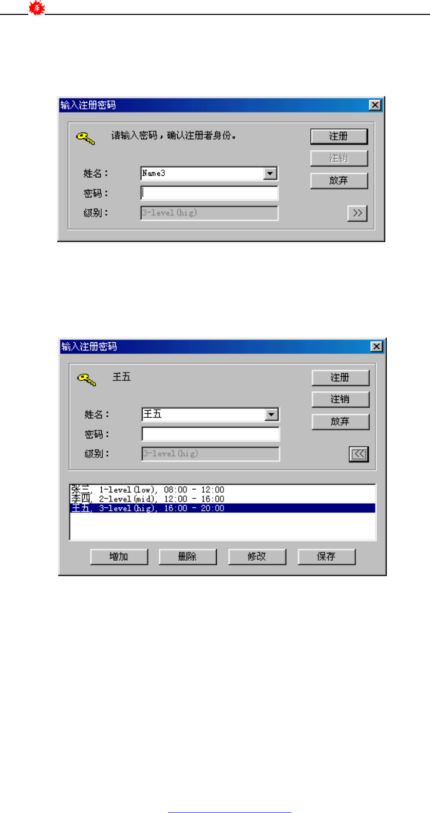 3.修改姓名和密码:只有级别为 3 级(3-level(hig))的才可以修改。