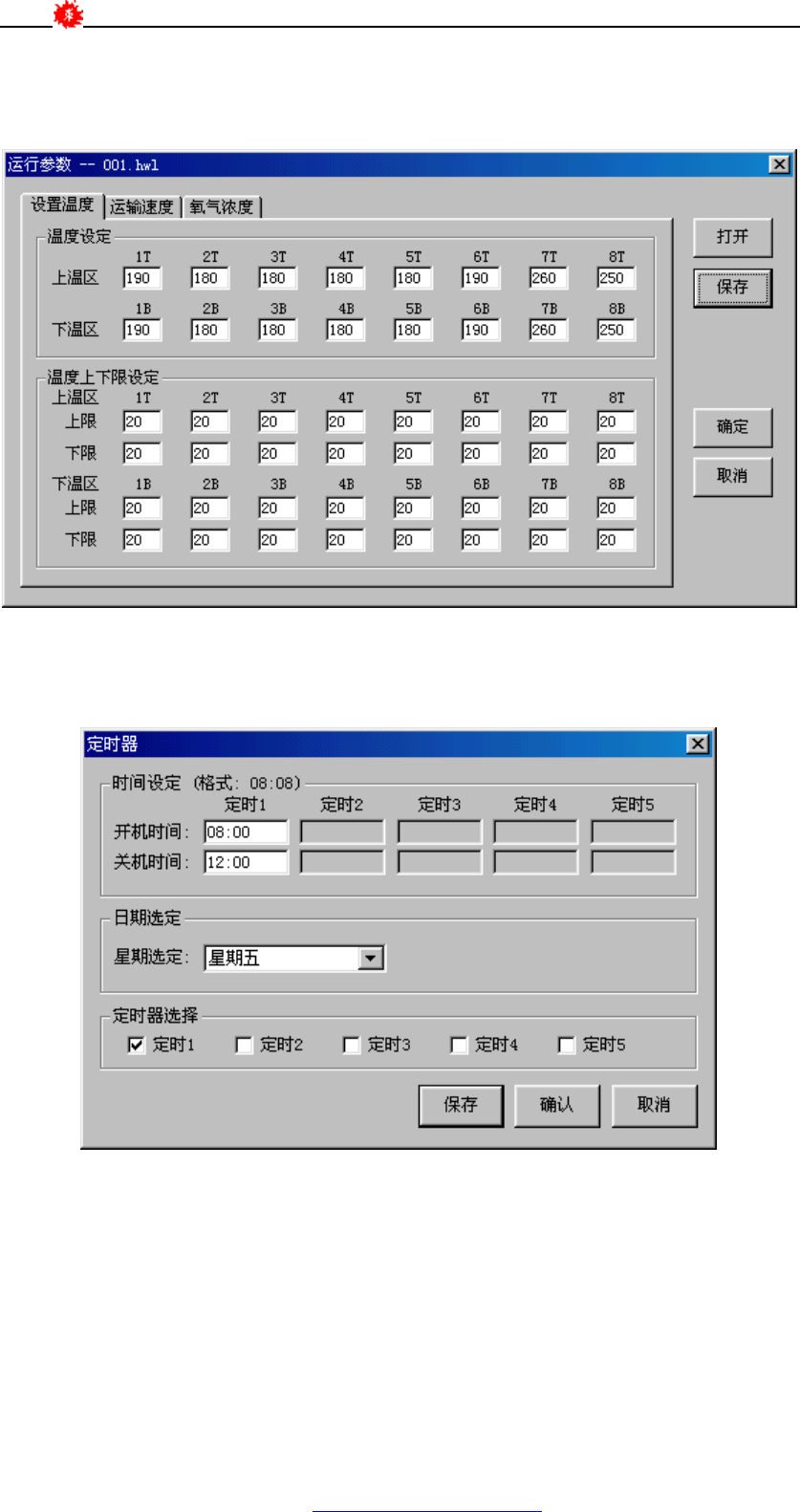 5.3.2 [运行参数]:设定或修改各温区温度、运输速度、氧气浓度等。操作如下: