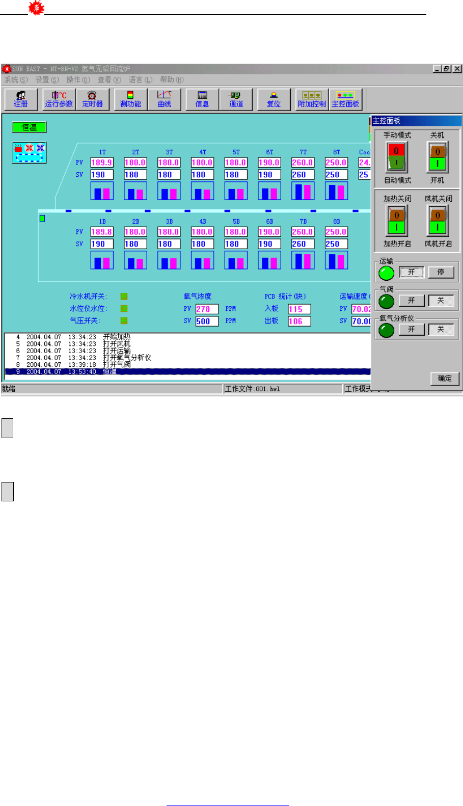! 2. 当各温区开始升温时,回流炉三色灯塔的黄灯亮,过一段时间后(少于 20 分钟),温度